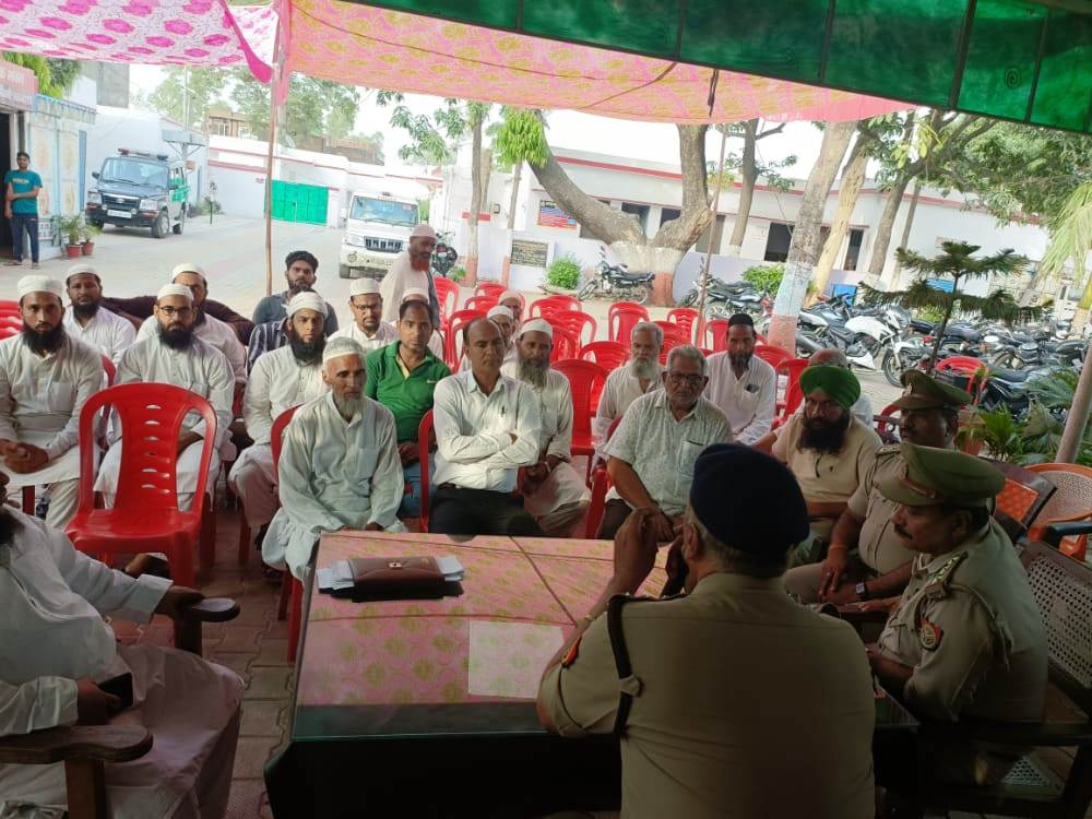 अफजलगढ़ कोतवाली परिसर में आगामी त्यौहारो को लेकर शांति समिति की बैठक का आयोजन किया गया, आयोजित बैठक में एसपी पूर्वी ओमवीर सिंह ने आगामी त्यौहारों को शांति पूर्वक मनाने की अपील के दौरान धर्मगुरुओं को शासन द्वारा जारी गाइडलाइन के तहत धार्मिक आयोजन करने की हिदायत दी, बैठक को संबोधित करते हुए एसपी पूर्वी ओमवीर सिंह ने धार्मिक आयोजनों को लेकर शासन द्वारा जारी गाइडलाइन पर विस्तार पूर्वक प्रकाश डालते हुए गाइडलाइन का अनुपालन करने का आह्वान किया, उन्होंने कहा कि कोई भी धार्मिक आयोजन सार्वजनिक स्थल पर आयोजित नहीं किया जायेगा, वहीं निर्धारित स्थानों पर ही धार्मिक आयोजन किए जायेंगे, किसी भी तरह की कोई नई परंपरा शुरू करने की अनुमति नहीं होगी, इसके अलावा अनुमति हासिल कर आयोजन किए जाने की स्थिति में भी प्रशासन को अवगत कराना आवश्यक होगा किसी भी तरह की गड़बड़ी होने पर आयोजक जिम्मेदार होंगे, आगामी त्यौहारों को शांति पूर्वक संपन्न कराने के लिए और कोई नई परम्परा न शुरू हो सभी लोगों से अपील की जा रही रही है, इस अवसर पर सीओ अतुल प्रधान, कोतवाल मनोज कुमार सिंह, एसएसआई दिनेश कुमार शर्मा, कस्बा इंचार्ज अनोखेलाल गंगवार, एसआई विनीत कुमार, महिला सब इंस्पेक्टर काजल तेवतिया, मुफ्ती सईदुर्रहमान, प्रधान पति रईस वकील, सरदार गुरविंदर सिंह, प्रमोद अग्रवाल, कांस्टेबल राहुल चौधरी, विकास बाबू, शिवकरन तथा शैलेंद्र कान्त आदि उपस्थित रहे।