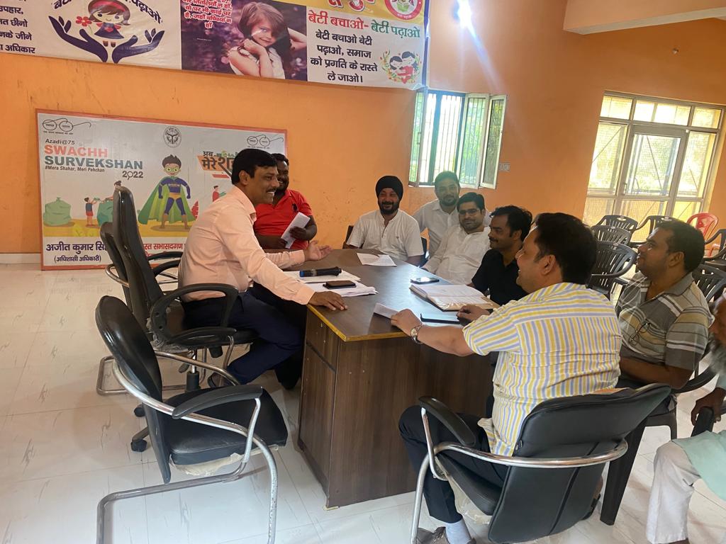 नूरपुर में नगरपालिका सभागार में व्यापारियों के साथ एक मीटिंग का आयोजन किया गया, अधिशासी अधिकारी अजीत सिंह एवं नगर इंचार्ज रविंद्र सिंह व्यापारियों के साथ बैठक की, जिसमें अधिशासी अधिकारी अजीत सिंह ने बताया कि शासन के आदेश पर 1 जुलाई से नगर में पॉलिथीन मुक्त अभियान चलाया जाएगा, व्यापारी उस में सहयोग करें, इस पर पश्चिम उत्तर प्रदेश उद्योग व्यापार मंडल के नगर अध्यक्ष सरदार रविंदर सिंह, महामंत्री संदीप जोशी ने मांग की कि पहले नगर पालिका परिषद अलॉटमेंट कराएं उसके बाद ही अभियान चलाए,ं अधिशासी अधिकारी अजीत सिंह ने नगरपालिका कर्मचारियों पुलिसकर्मियों और व्यापारियों को प्लास्टिक के बैग या थैली ना उपयोग करने की षपथ दिलाई, शपथ में कहा गया कि मैं किसी दुकानदार से या किसी अन्य से प्लास्टिक के बैग या थैली की मांग नहीं करूंगा, मैं खाने के लिए पुनः उपयोग में लाई जा सकने वाली क्रोकरी का ही उपयोग करूंगा एवं सिंगल उपयोग का प्लास्टिक का बहिष्कार करूंगा, प्राकृतिक संसाधनों नदी तालाब झील और समुद्र आदि में प्लास्टिक सहित अन्य कचरे आदि को नहीं फेंकूंगा और ना ही किसी अन्य को फेंकने दूंगा, इस दौरान श्चिम उत्तर प्रदेश उद्योग व्यापार मंडल के नगर अध्यक्ष सरदार रविंद्र सिंह, महामंत्री संदीप जोशी, तस्लीम अहमद, मुकुल गुप्ता, आर्यवीर एडवोकेट लालमन सिंह, शाहनवाज मलिक आदि व्यापारी उपस्थित रहे