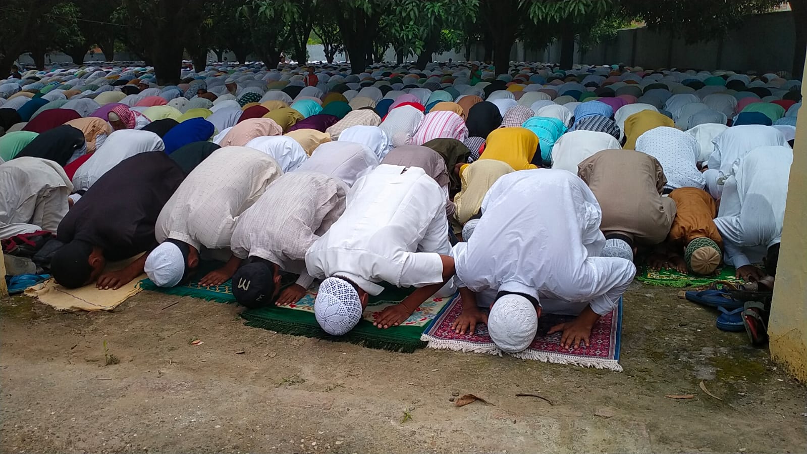 धामपुर मेें ईद-उल-अज़हा का त्यौहार शांतिपूर्वक और हर्षाेल्लास के साथ मनाया गया, हजारों लोगों ने कौम और देश की शांति के लिए नमाज अता की, बता दें कि नगीना रोड स्थित ईदगाह पर हजारों मुस्लिमों ने सुबह 8 बजे ईद उल अजहा की नमाज अदा की, शहर इमाम मुफ़्ती कमर कासमी के नेतृत्व में हजारों मुस्लिमों ने कौम और देश की तरक्की के लिए दुआ की, इस मौके पर, समाजवादी पार्टी, नगर कल्याण समिति, बहुजन समाज पार्टी आदि की ओर से नमाजियों के लिए शिविर भी लगाये गये, जिसमें नरेंद्र गुप्ता, विजय अग्रवाल, सतवंत सिंह सलूजा, अवनी चौहान, सरदार गुरूषरण सिंह मोहन, षिवेंद्र अग्रवाल, पूर्व नगरपालिका अध्यक्ष महमूद हसन कस्सार, जावेद सईद, वीरेंद्र रस्तौगी, नगरपालिका अध्यक्ष पद के भावी प्रत्याषी योगेष रस्तौगी बाबू भैया, पूर्व राज्यमंत्री ठाकुर मूलचंद चौहान, नसीम राणा, लाल बहादुर, हाजी कलाम अंसारी, मुदित गुप्ता, अरमान अली, आदि लोगों ने मुस्लिम भाईयों को गले लगकर ईद की मुबारकबाद दी, सुुरक्षा व्यवस्था के उपजिलाधिकारी मनोज कुमार, पुलिस क्षेत्राधिकारी इंदु सिद्धार्थ, तहसीलदार गोपेष तिवारी, नगरपालिका अधिषासी अधिकारी सुभाश कुमार, कोतवाल माधों सिंह विष्ट, सहित पुलिस बल भी मौजूद रहा, सभी ने शांतिपूर्वक ईद का त्यौहार मनाकर हिंदू मुस्लिम एकता की मिसाल पेश की।